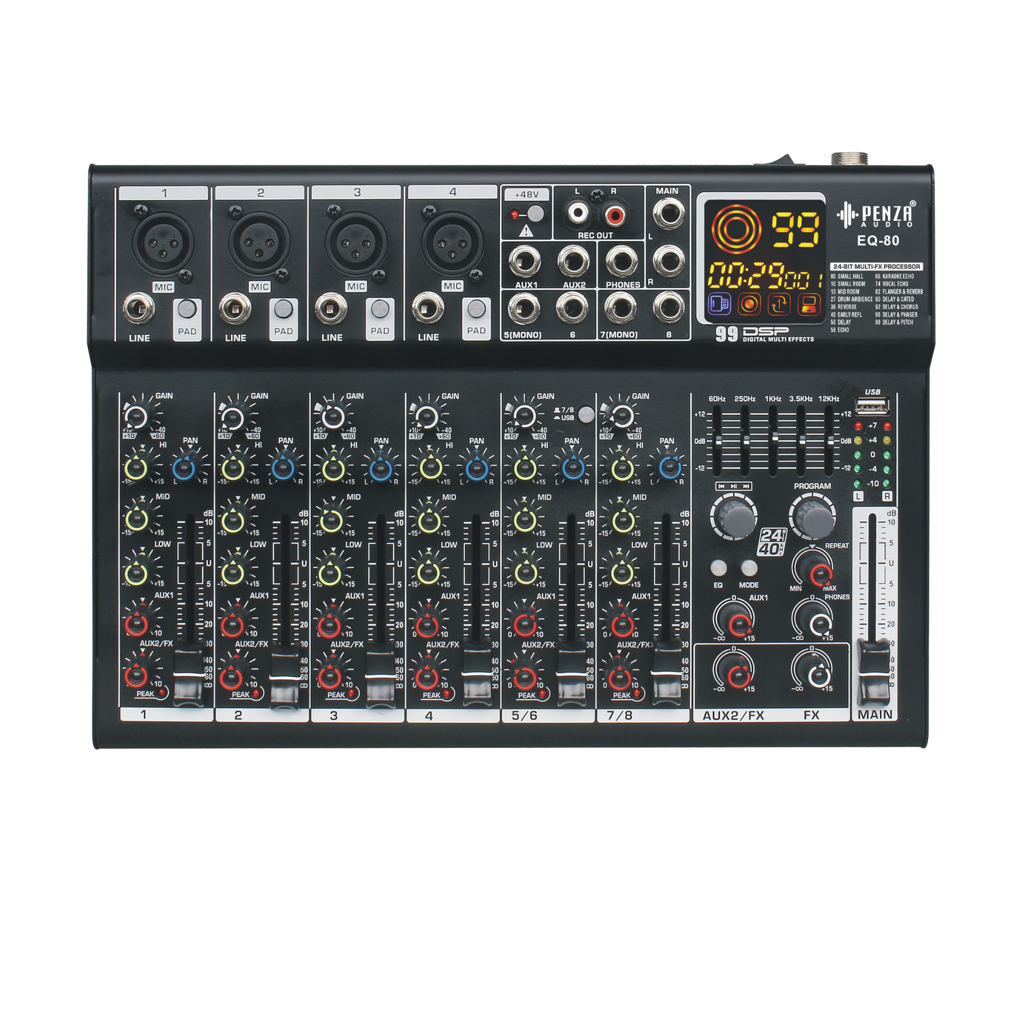 With its advanced equalization controls and low-noise circuitry, the EQ-80 allows users to fine-tune audio output accurately, making it suitable for musicians, DJs, sound engineers, and public address systems.