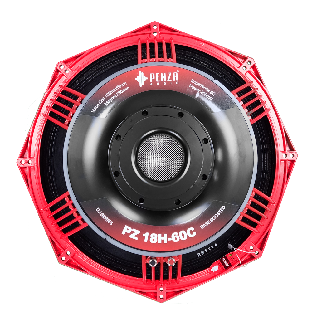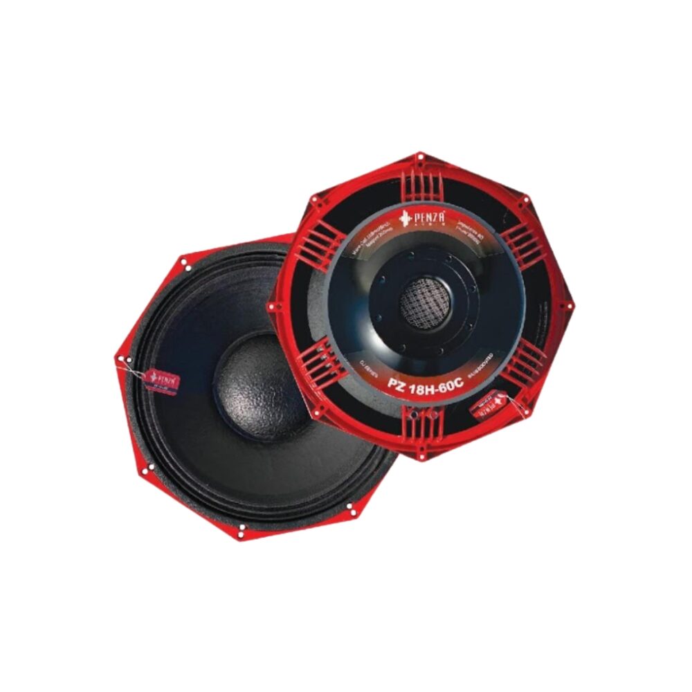 The PZ 18H-60C is an 18-inch high-power PA speaker designed for professional audio systems, such as DJ setups, stage performances, live sound reinforcement, events and public address use. It’s part of the PZ series of loudspeakers from Penza Audio and similar manufacturers, built to deliver strong bass performance and high sound pressure levels (SPL) with large-format speaker drivers. This model is often used in sound systems needing deep low frequencies and robust output for outdoor or large indoor venues.