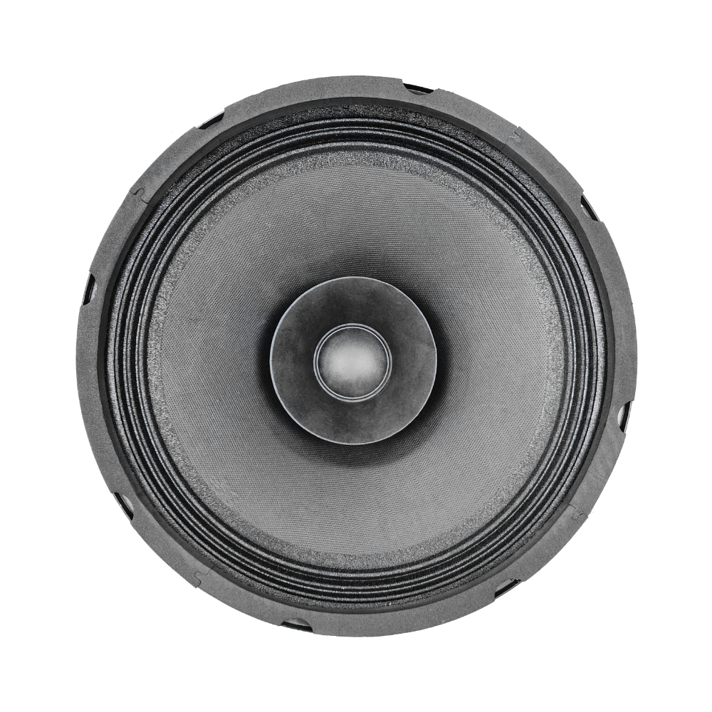 Uses a 12-inch driver cone, a common size for balanced bass and midrange response in PA speakers.